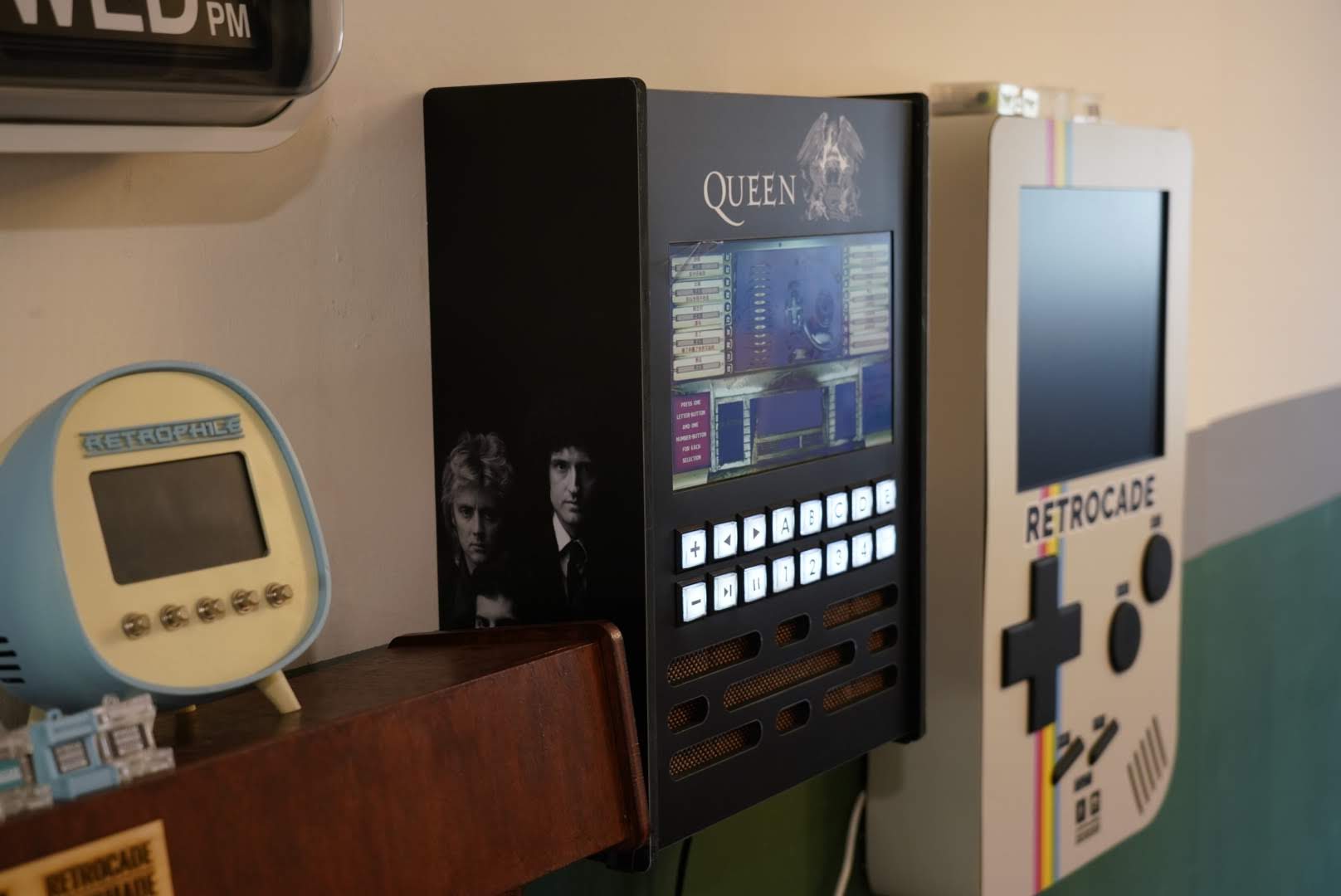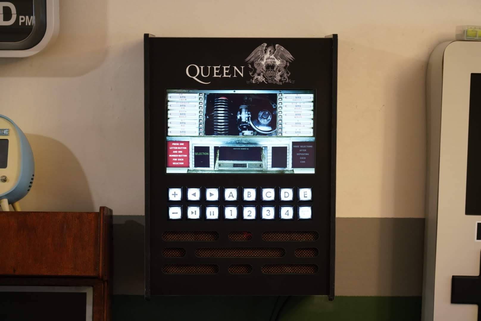 The interface paired with the tactile buttons, emulates the jukeboxes of yesteryears.